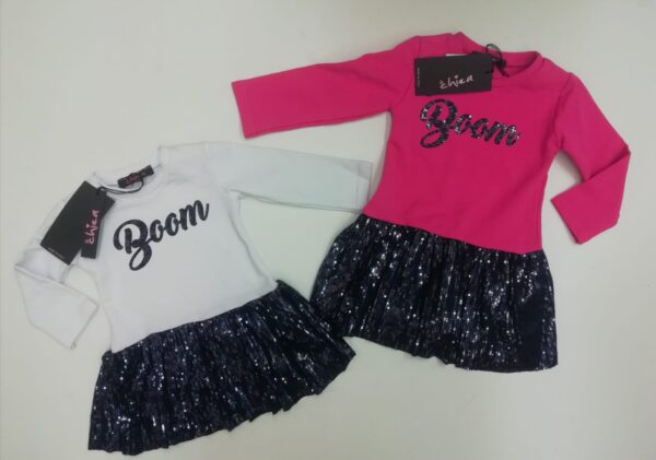 MANICA LUNGA A GIROCOLLO,CON STAMPA BOOM SUL DAVANTI CON PAILLETTES APPLICATE