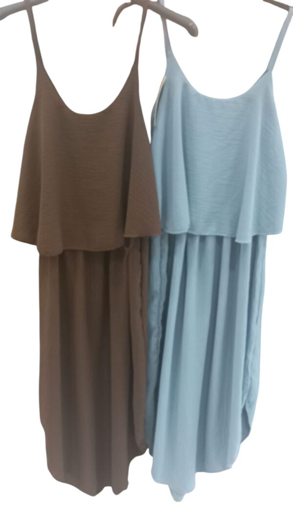 ABITO DONNA CON SPALLINE SOTTILI E BALZA SUL CORPINO