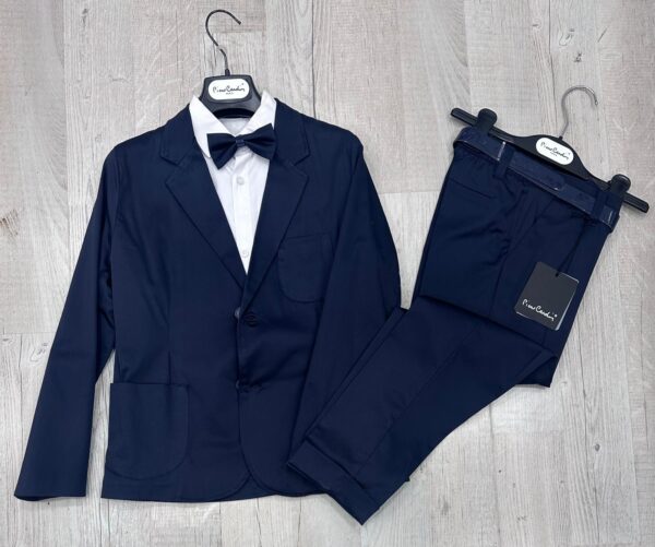 Completo elegante bambino blu navy – giacca, pantalone, camicia e papillon