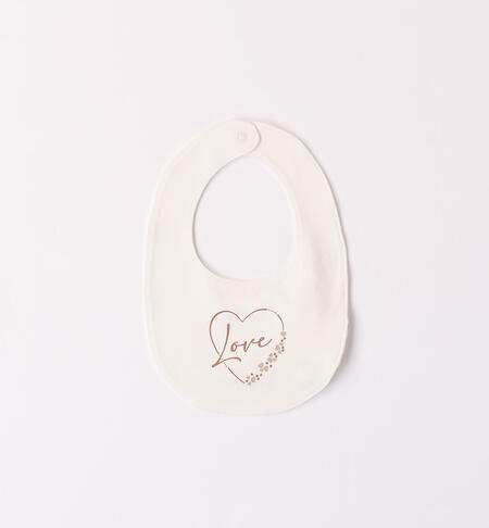 Bavaglio per neonata realizzato in jersey stretch con scritta frontale ricamata e cuore. Apertura con bottone a pressione.