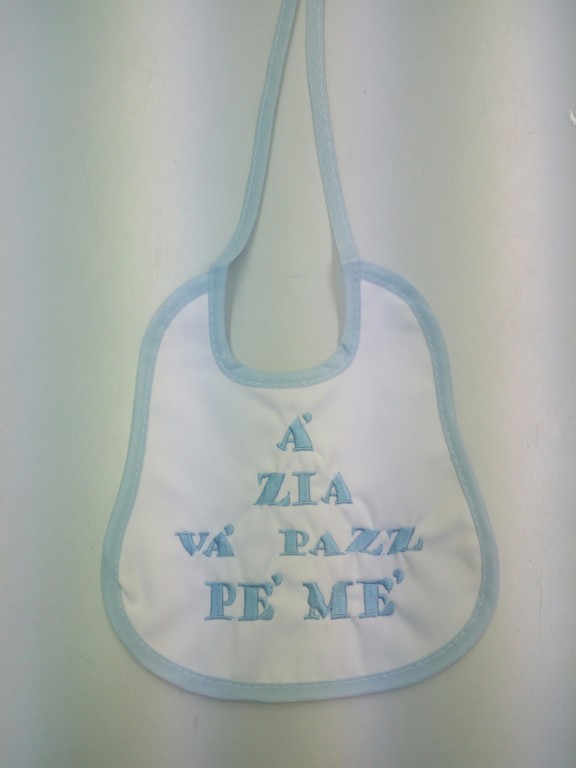 BAVETTA NEONATO/A CON SCRITTA : A’ ZIA VA’ PAZZ PE’ ME’