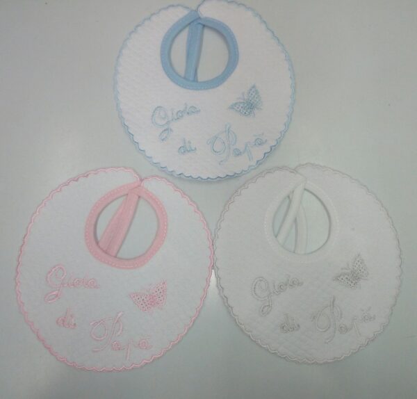 BAVETTA PICCOLA NEONATO/A CON SCRITTA “GIOIA DI PAPA'” E FARFALLA DISEGNATA