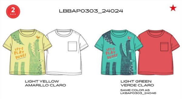 Il set si compone di due t-shirt: una con stampa , l’altra a fantasia.