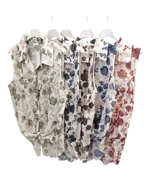 Blusa leggera senza maniche,realizzata in tessuto semi-trasparente. Colletto classico,chiusura con bottoni e nodo sul fondo aggiungono un tocco moderno e femminile.Capo fresco e versatile,100%Made in Italy.Disponibile in piu colori taglia unica.