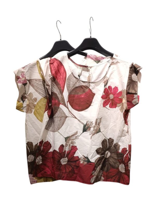BLUSA DONNA FANTASIA FLOREALE NEL TONI DEL ROSSO MARRONE E VERDE