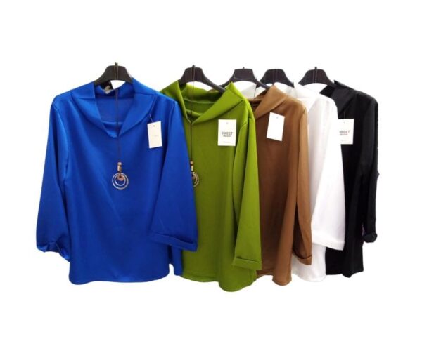 Blusa in satin, con dettaglio di collana.