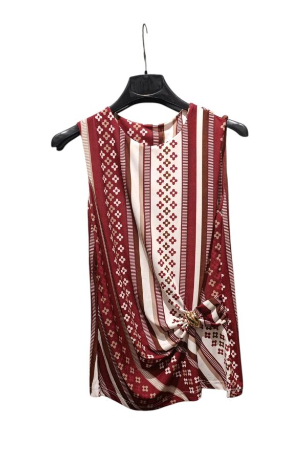 BLUSA SMANICATA DA DONNA IN FANTASIA BORDEAUX E PANNA CON MOTIVO A RIGHE E PICCOLI FIORI