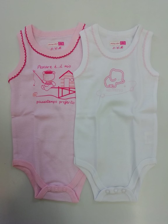 UNO A FANTASIA A RIGHE CON DISEGNINO E UNO TINTA UNITA CON DISEGNINO,IN COTONE.