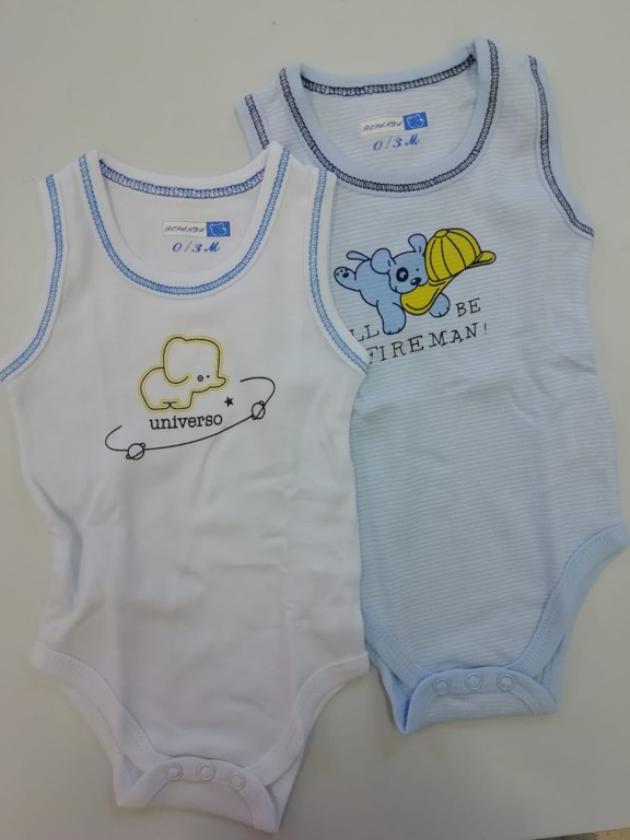 UNO A FANTASIA A RIGHE,UNO BIANCO CON DISEGNINO FRONTALE,IN COTONE.