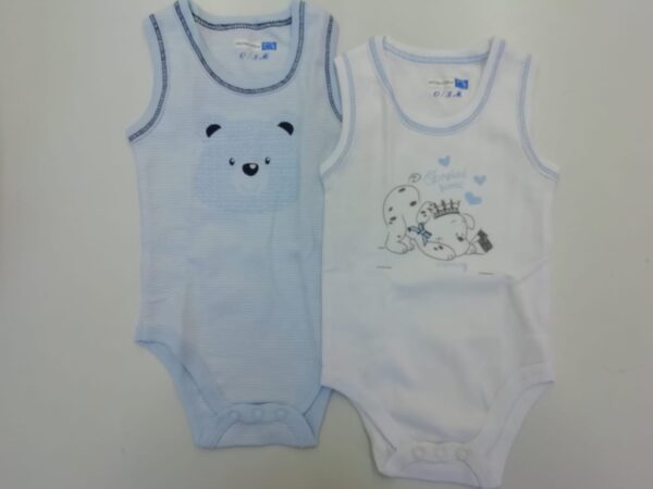 UNO A FANTASIA A RIGHE CON ORSETTO DISEGNATO E UNO TINTA UNITA CON CAGNOLINO DISEGNATO,IN COTONE.
