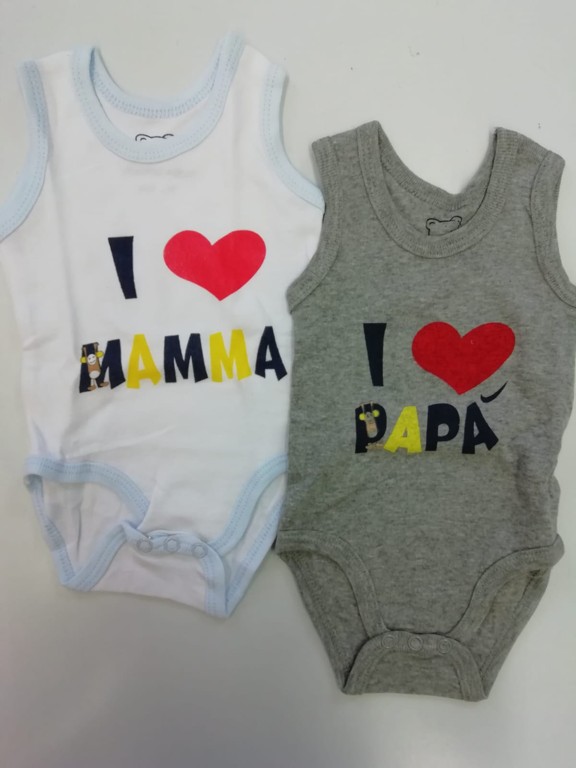 CON SCRITTA”I LOVE MAMMA” E “I LOVE PAPA'” IN COTONE.