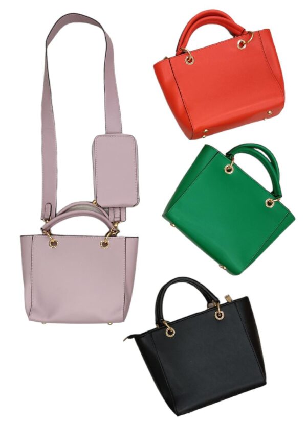 borsa donna a mano con manici corti e tracollina remobìvibile con porta cellulare