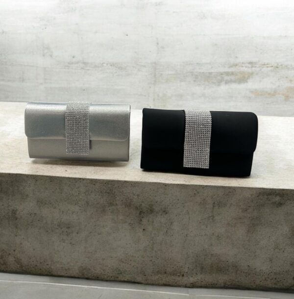 borsa pochette elegante in ecopelle con applicazione di una fascia strass. con tracolla.