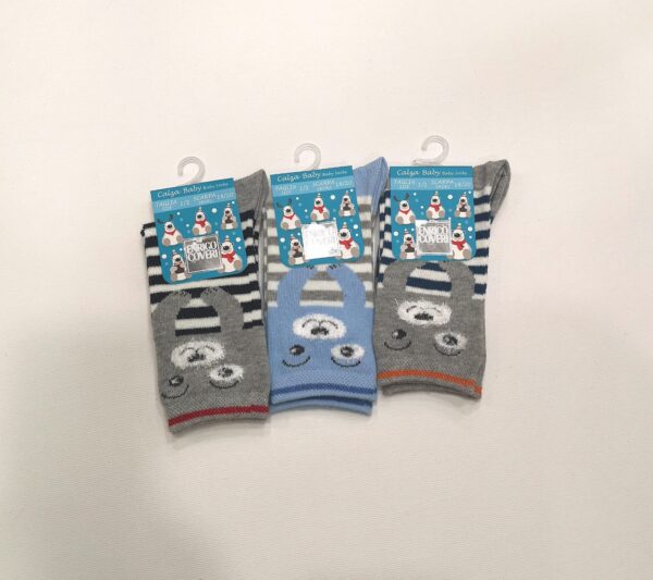 CALZINO BIMBO,A FANTASIA A RIGHE+ORSETTO DISEGNATO