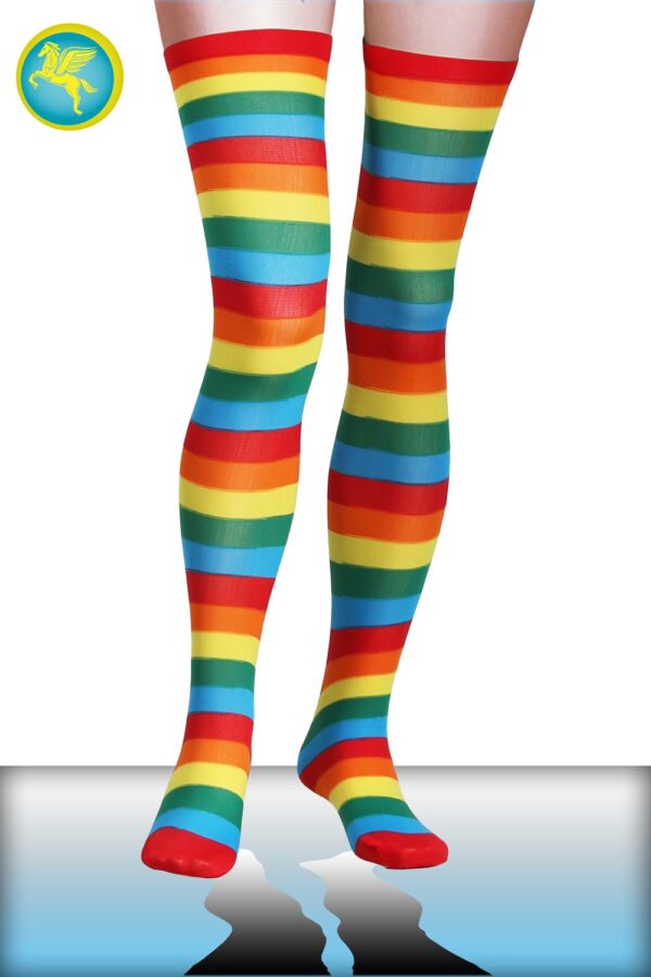 Le calze parigine multicolore adulte sono disponibili in taglia unica e sono adatte per personalizzare il proprio costume. calzeparigine, PITTRICE, ARCOBALENO, CLOWN, PAGLIACCETTA, SLIDEARCOBALENO, CALZE, COLLANT