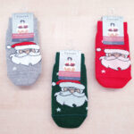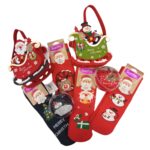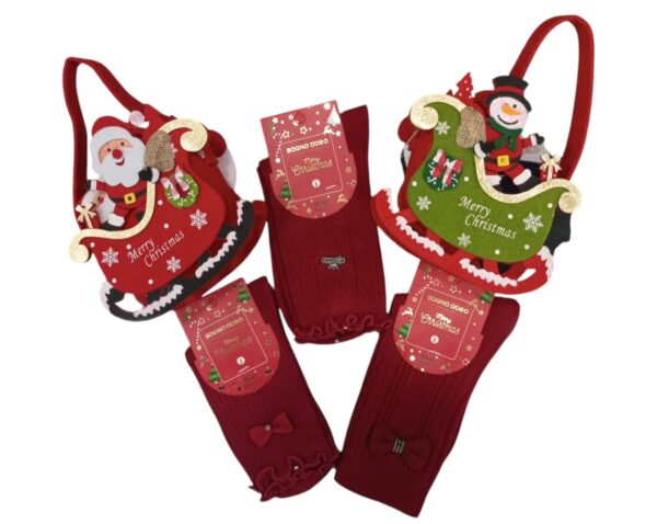 Calze donna in tinta unita con dettaglio vari tipi di fiocchetto o applicazioni,confezionate nell’apposita pallina trasparente da appendere all’albero oppure confezione natalizia in feltro.