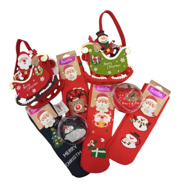 Calzini antiscivolo con stampa natalizia,confezionati nell’apposita pallina trasparente o confezione in feltro.
