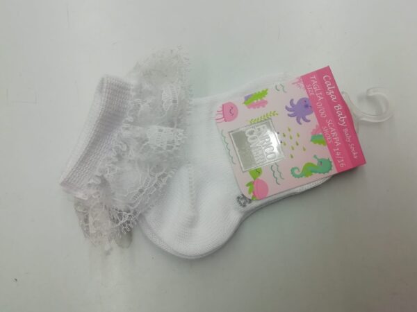 CALZINO CON RICCETTO PIZZO BIMBA PER CERIMONIA E BATTESIMO COMUNIONE