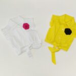 CAMICETTA NEONATA A MEZZE MANICHE CON PERLE SUL COLLETTO E VOLANT ALLE MANICHE.