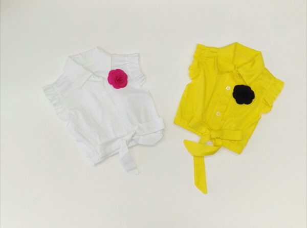 CAMICIA IN COTONE CON SPILLA A FIORE E FIOCCO IN VITA