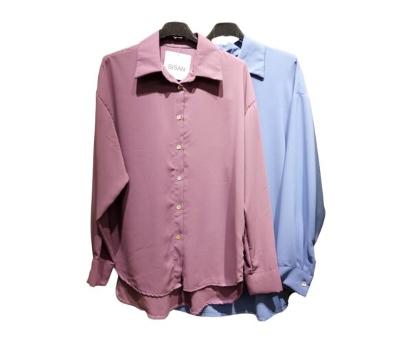 Il capo, in tinta unita, presenta un colletto a punta, con apertura a bottoni.