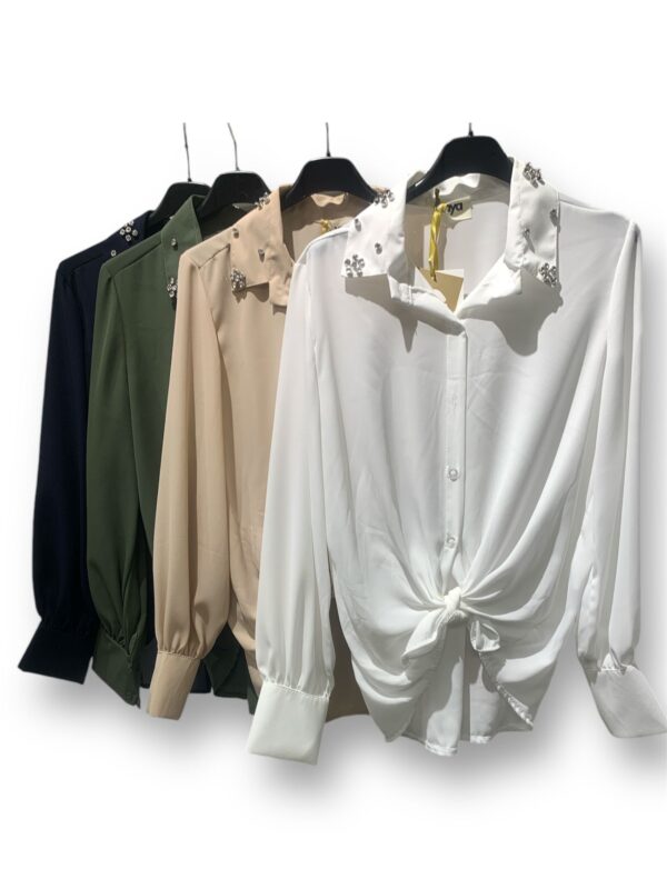 CAMICIA DONNA CON APPLICAZIONE DI STRASS SUL COLLETTO