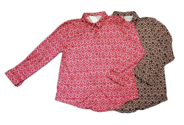 Camicia Curvy, in stampa a fantasi, realizzata in licra.