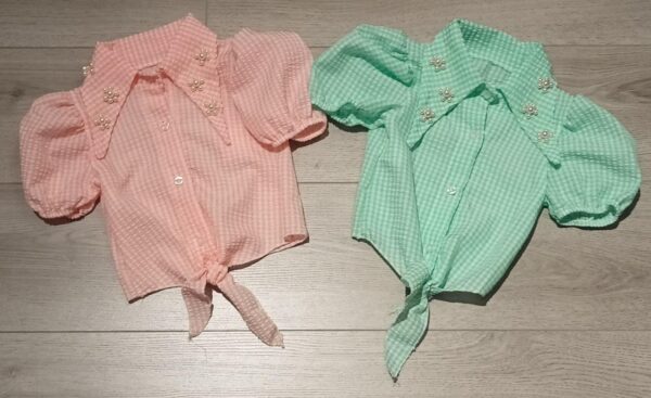 CAMICIA MEZZA MANICA CON SPALLINA A PALLONCINO MODELLO CORTO DA ANNODARE SUL DAVANTI.