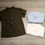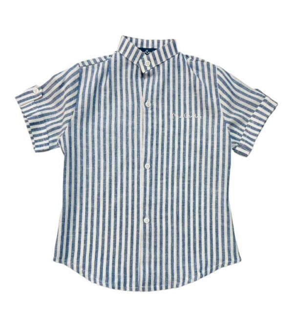camicia alla coreana fantasia righe, manica lunga con bottone sul braccio.