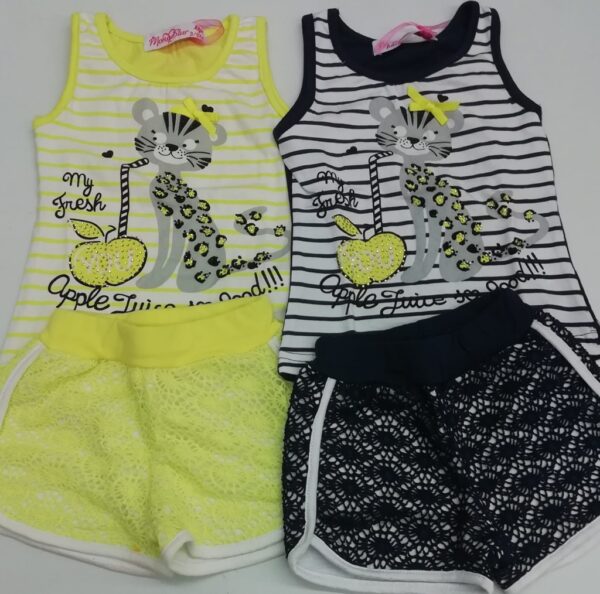 CANOTTA CON STAMPA A RIGHE,GATTINO DISEGNATO FRONTALE,TINTA UNITA SUL RETRO,