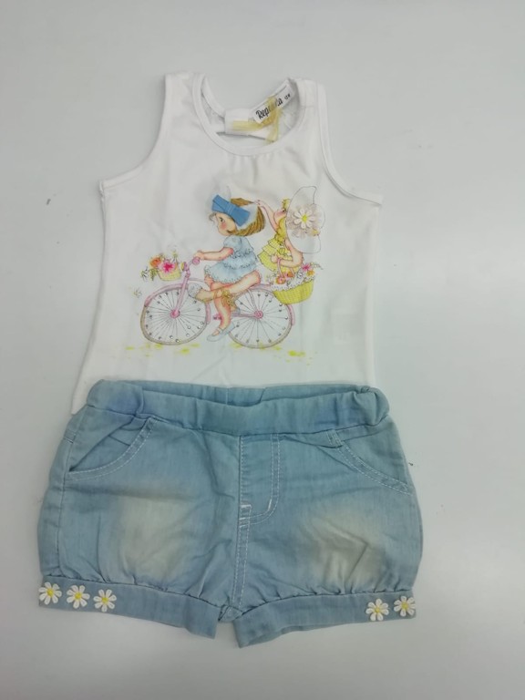 CANOTTA CON STAMPA BIMBA E BICICLETTA FRONTALI,PIZZO SUL RETRO SULLA PARTE ALTA,IN COTONE,