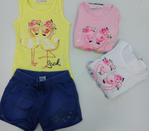 CANOTTA SPALLA LARGA CON FENICOTTERI DISEGNATI,IN COTONE TESSUTO ELASTICIZZATO