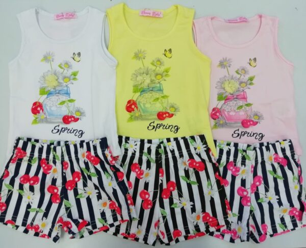 SHORTS CON MOLLA IN VITA FANTASIA,RIGHE E CILIEGIE,IN COTONE,TESSUTO ELASTICIZZATO.