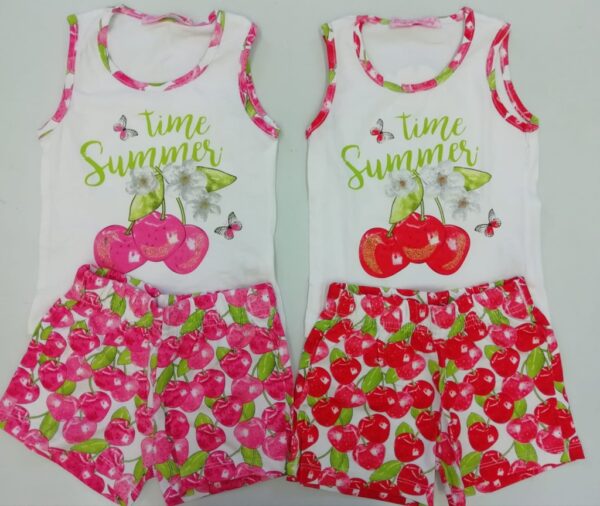 CANOTTA SPALLA LARGA,SHORTS CON MOLLA IN VITA FANTASIA CILIEGIE,