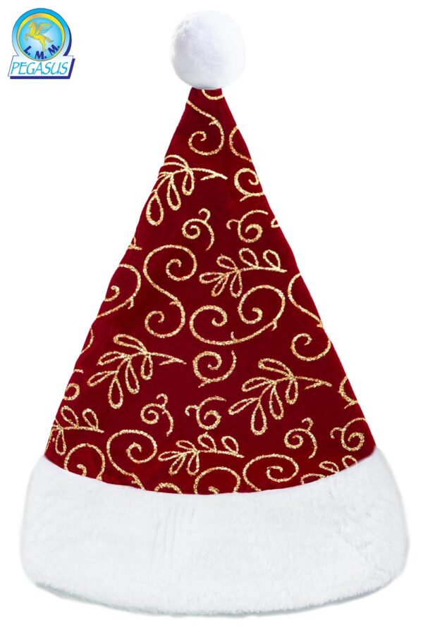 Cappello Babbo Natale Velluto Stampato Bordeaux Accessorio Di Carnevale