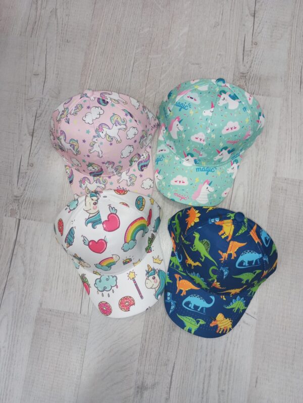 CAPPELLO BIMBO/A UNICORNO DINOSAURI , CON VISIERA.COTONE