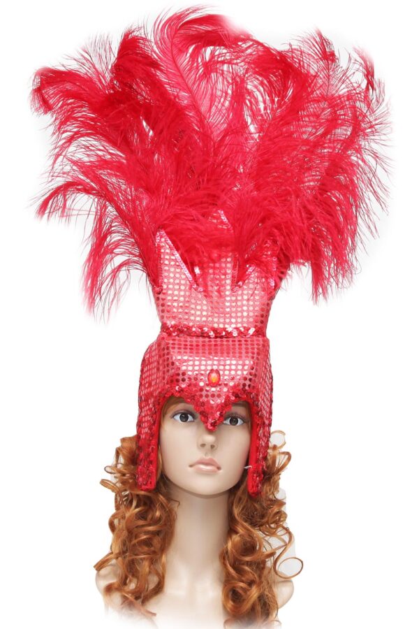 Il cappello brasiliana rosso ? disponibile in taglia unica ed ? adatto per personalizzare il proprio costume. NAZIONI, BRASILE, PIUME GRANDI, cappellobrasiliana