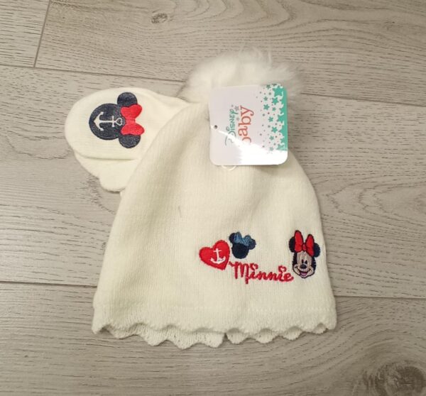 CAPPELLO CON PON PON IN PELUCHES CON RICAMO MINNIE IMBOTTITOIN PILE COMPLETO DI MUFFOLE IN COORDINATO