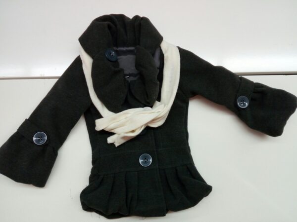 CAPPOTTINO BIMBA CON BOTTONE SULLA MANICA + SCIARPA PANNA.