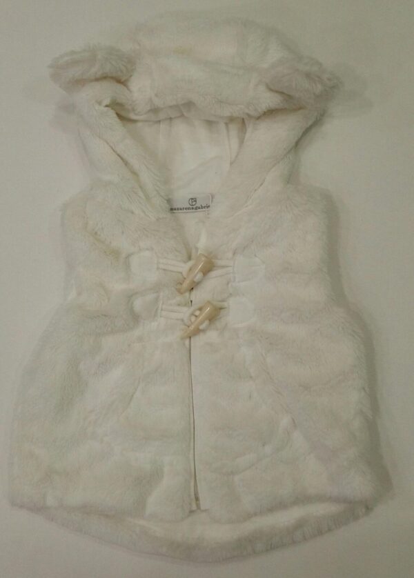 CAPPOTTINO SMANICATO NEONATA CON CAPPUCCIO E SIMPATICISSIME ORECCHIE.