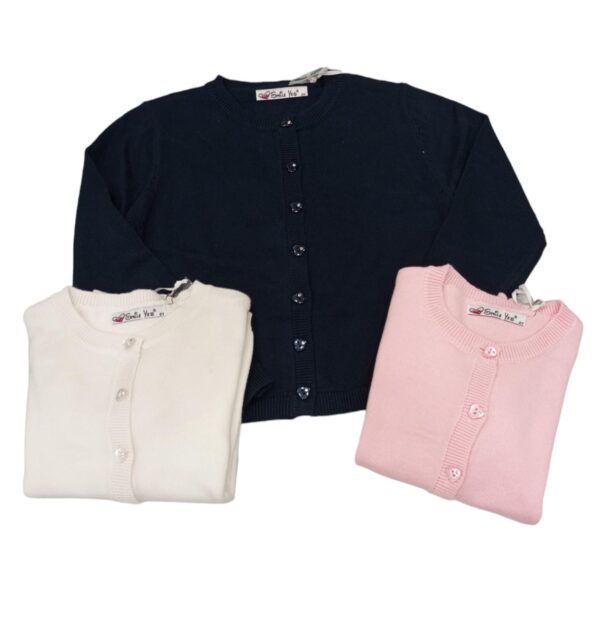 cardigan bambina in filo di cotone con strass sui bottoni.