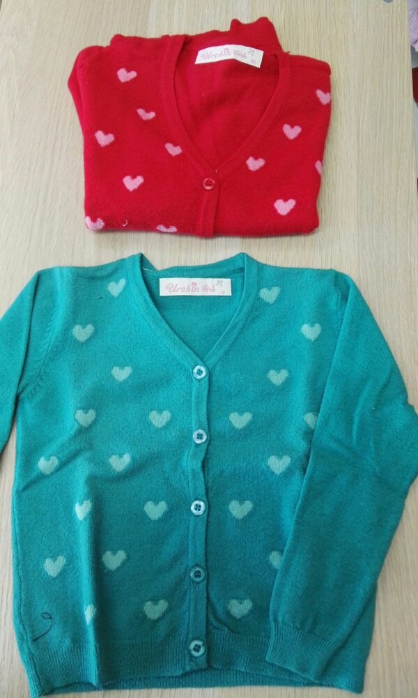 CARDIGAN BIMBA MISTO LANA CON FANTASIA CUORI 5 BOTTONI.
