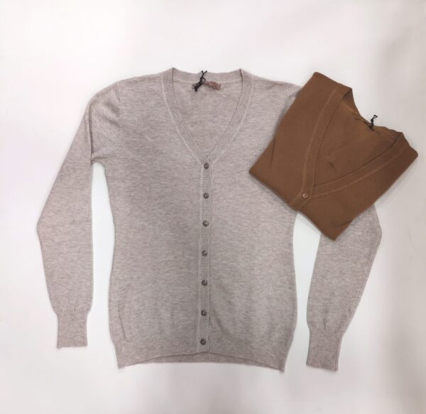 CARDIGAN DONNA MANICA LUNGA CON SCOLLO A V E CHIUSURA CON BOTTONCINI . MORBIDO ED ELASTICIZZATO. DISPONIBILE NEI COLORI SENAPE E CACHI.