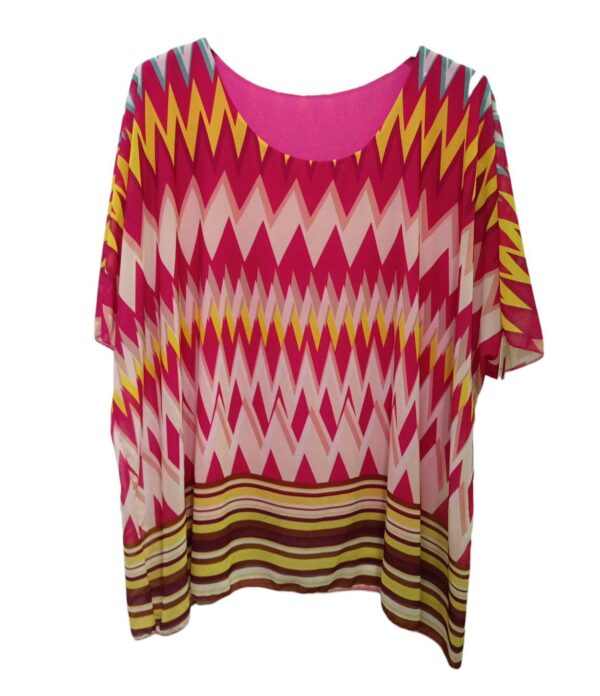 Fresca casacca dalla fantasia geometrica , realizzata in viscosa adatta alla calda stagione.