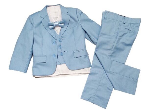 L’abito si compone di una giacca, una camicia, un gilet, un pantalone e un papillon abbinato.