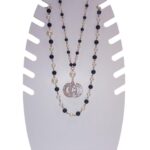 collana in acciaio con serpente con applicazione di strass .