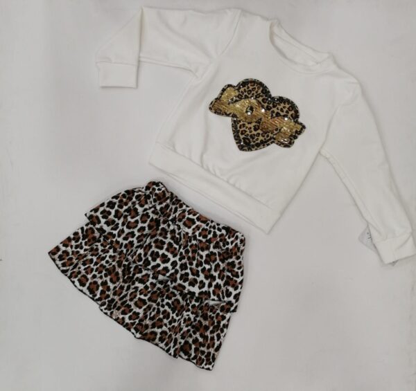MAGLIA CON CUORE LEOPARDATO SUL DAVANTI E SCRITTA ” LOVE” CON PAILLETTES