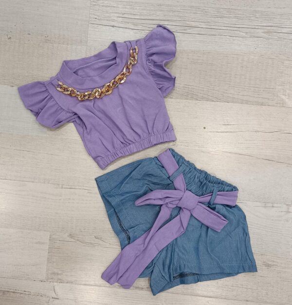 short effetto jeans con cintura coordinata