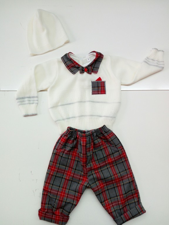MAGLIONCINO CON COLLETTO E PAPILON SCOZZESE + CAPPELLINO.