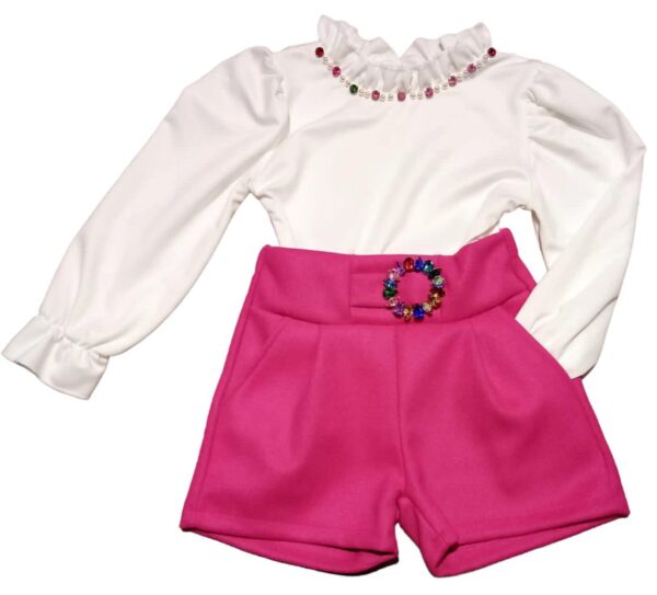 maglia felpata all’interno con colletto a riccetto e strassini colorati